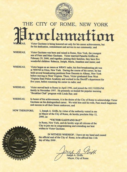 My name is Vic "Thomas" Gazitano. I was born and raised in Rome, NY... about an hour east of Syracuse.